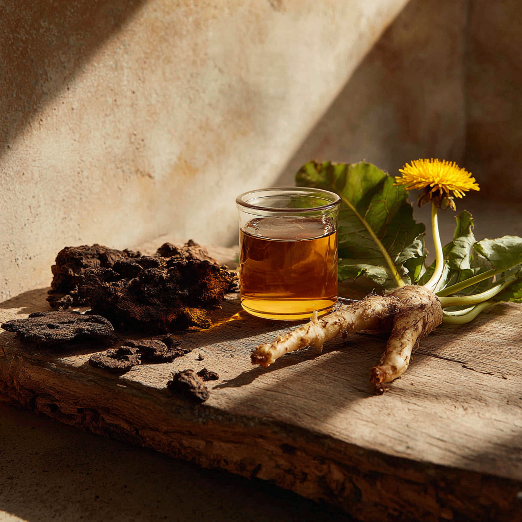 A powerful botanical blend featuring Shilajit, Chaga extract, Dandelion root extract, and Maple syrup. Carefully combined with respect for traditional use and natural synergy.